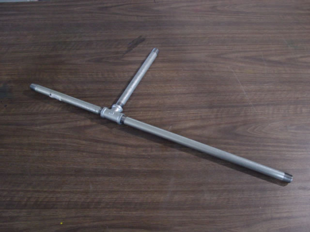 Fit the pipe sections and T fitting together like this:
