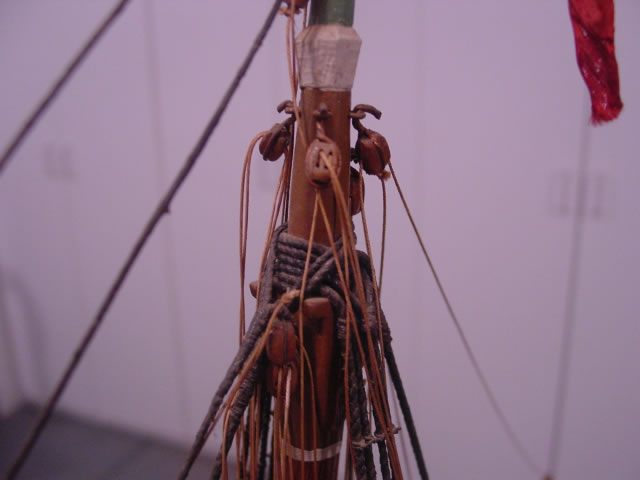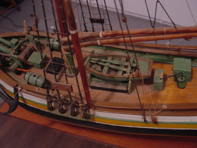 The rigging has some serious damage, plus there are a few smaller parts broken or missing. I'm going to try and fix it up, as someone put a lot of work into making this model and it should be beautiful if I can get it cleaned up and repaired.