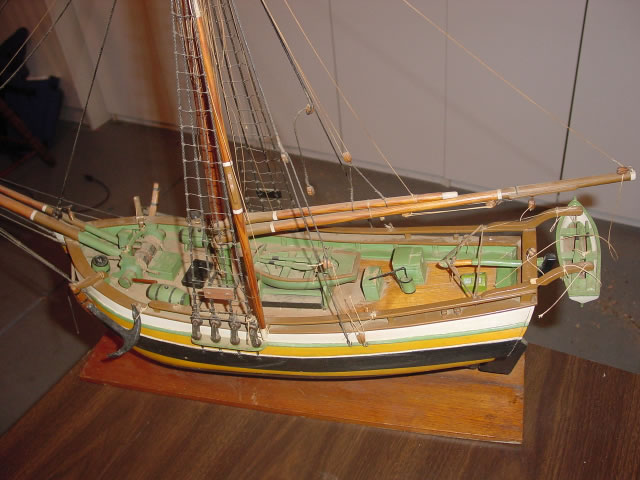 If anyone has information on the type of ship, pictures or drawings of similar real ships that can help me sort out the rigging or actual history, please send me an email at "dave at zievid.com".